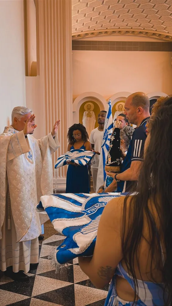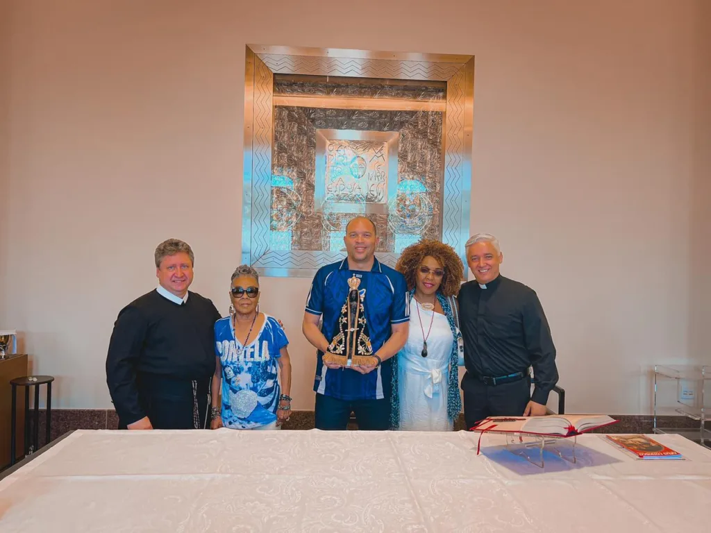 ”A Portela é uma escola movida pela fé. Nossa devoção a Nossa Senhora da Conceição, a São Sebastião e as missas mensais realizadas em nossa capela, na quadra, reafirmam a espiritualidade e a religiosidade do povo portelense. Estar em Aparecida é um momento de gratidão e renovação das forças, um pedido de proteção para o caminho que vamos trilhar até o Carnaval de 2026″, declara Escafura.